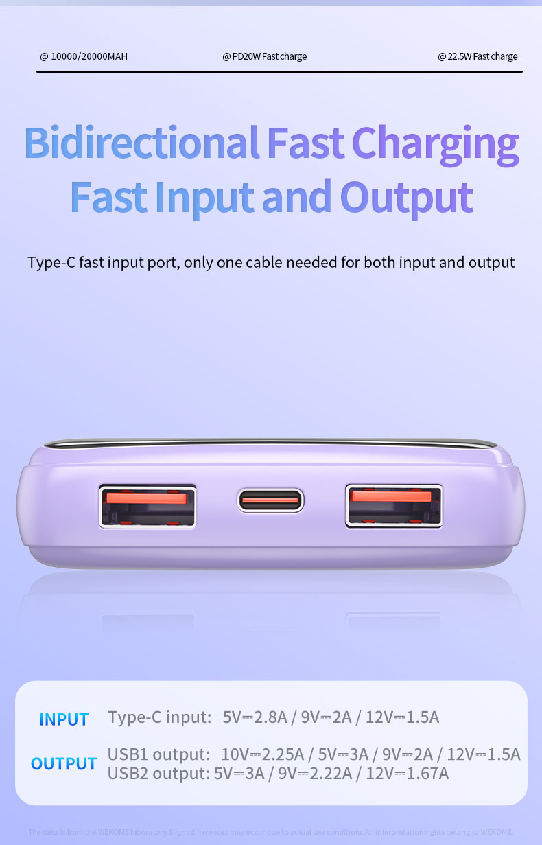 Output Type-C: 5V-3A/9V-2.22A/12V-1.67A USB1/2: 10V-2.25A/5V-3A/9V-2A/12V-1.5A
