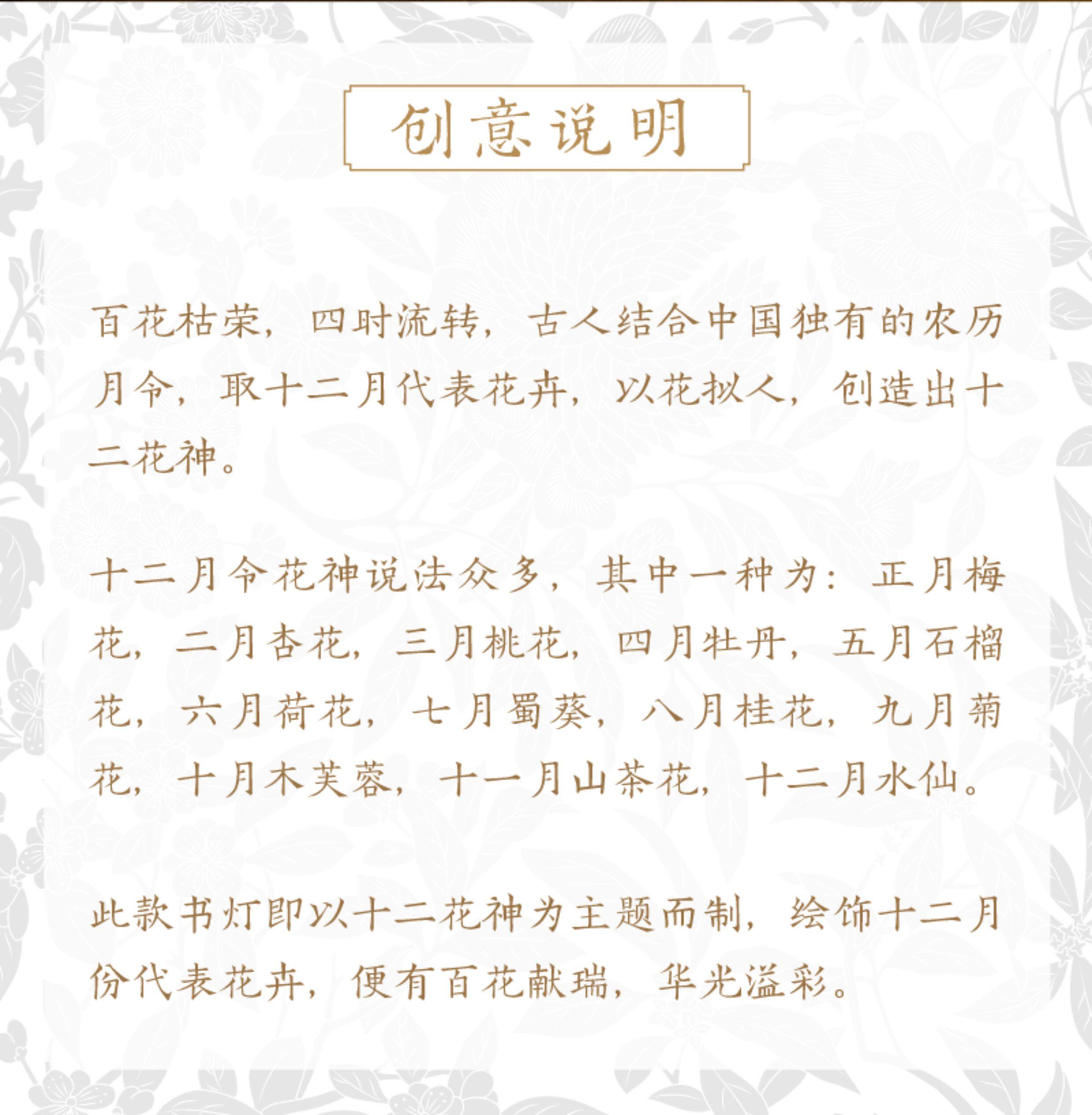 - 博物馆文创设计,文化韵味十足 - 十二花神主题,造型雅致美观 - 床头小夜灯,温馨伴睡氛围佳