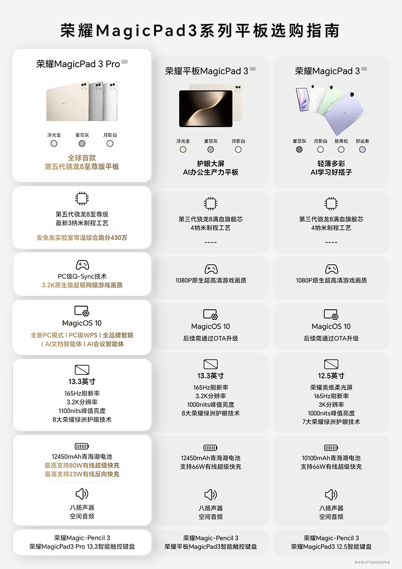 | 机身颜色 | 月影白 ou 星空灰 ou 浮光金 |