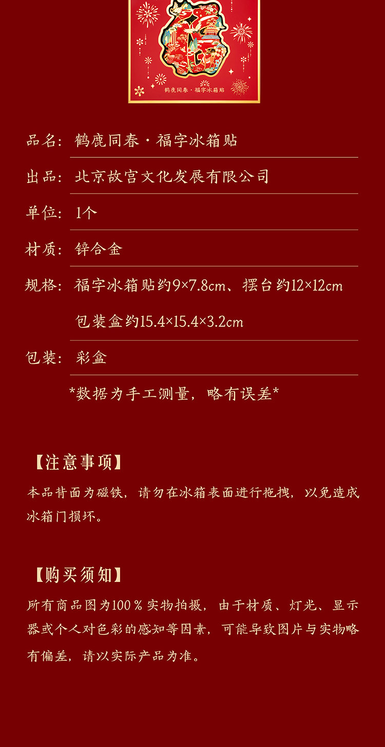 | 商品规格 | 鹤鹿同春福字冰箱贴 |