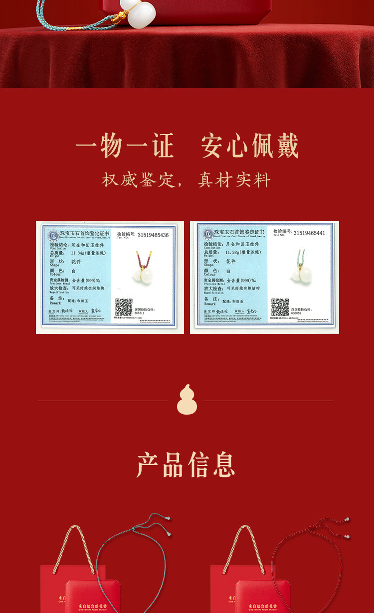 | 商品规格 | 白玉葫芦·和田玉项链(红色编绳款) 或 白玉葫芦·和田玉项链(蓝色编绳款) |