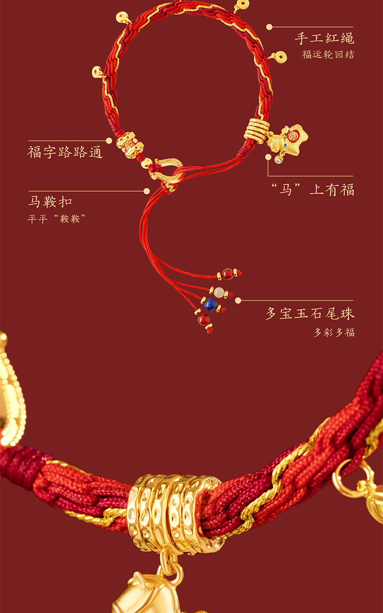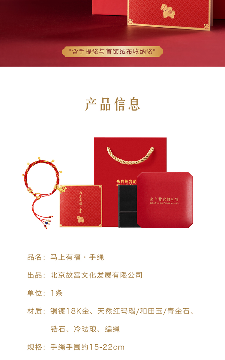 故宫淘宝|马上有福红绳编织手链红手绳文创本命年生日礼物女生